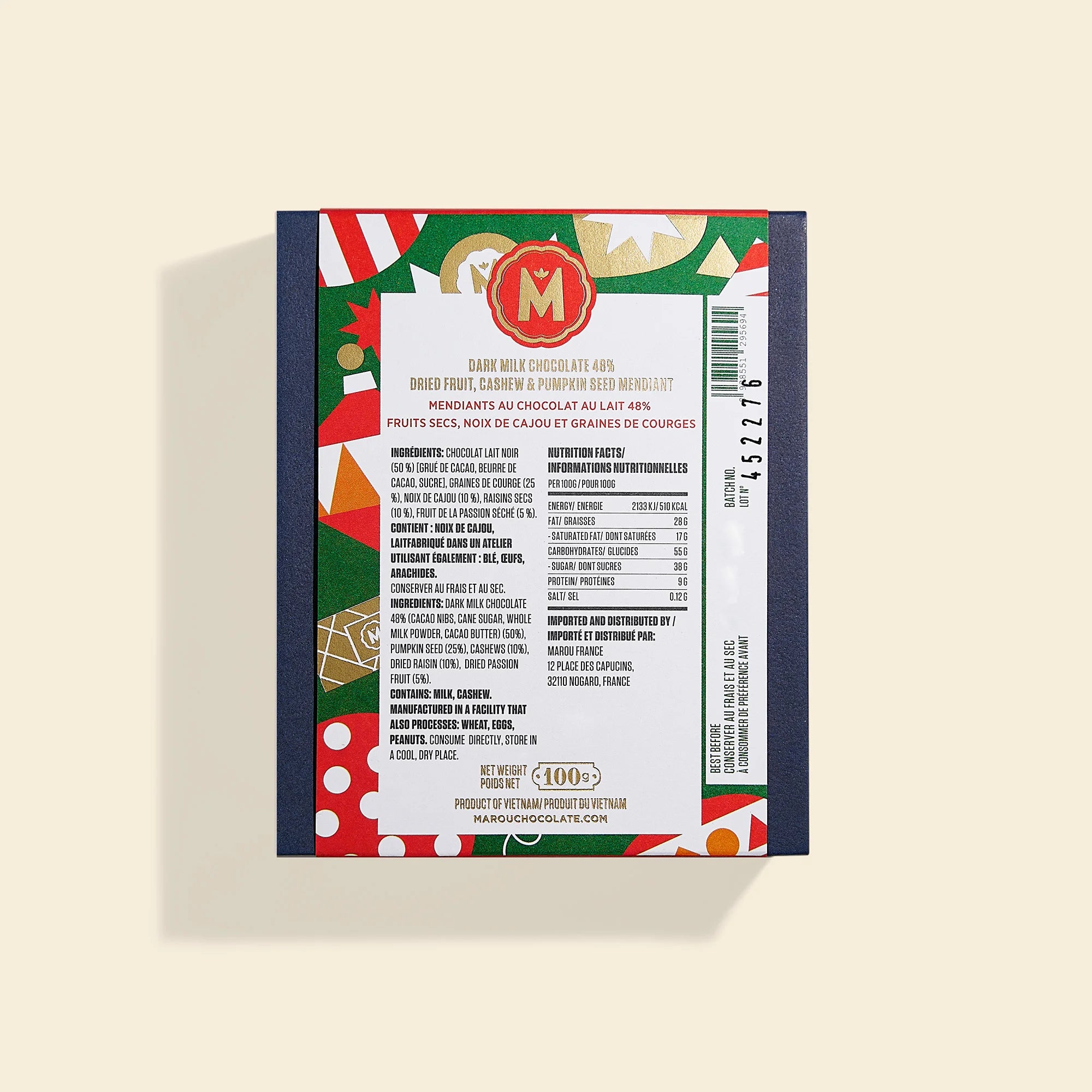 Dried Fruits, Cashew & Pumpkin Seed Mendiants 48% Milk Chocolate – Christmas Edition